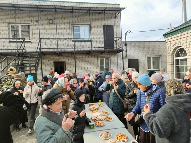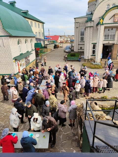 По прибытии паломников в наш храм, был отслужен благодарственный молебен, по окончании которого, всех участвующих в Крестном ходе накормили горячим обедом, бутербродами и пирожками со сладким горячим чаем.