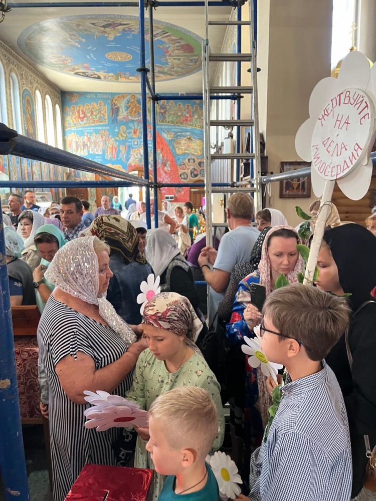 Дети нашей воскресной школы, вместе с преподавателями и родителями, сделали своими руками белые цветы и раздавали их всем пришедшим в этот день на службу.